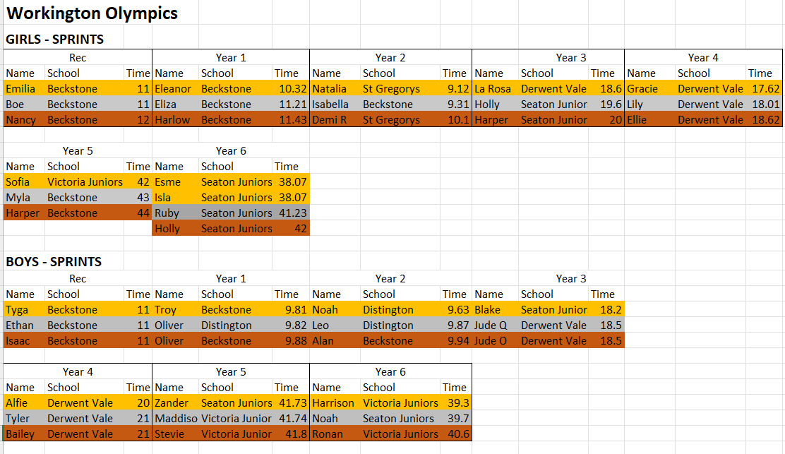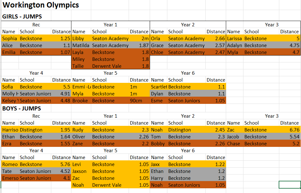 Please see our medalists below for Sprints, Jumps and Throws, congratulations to every child who made the podium.