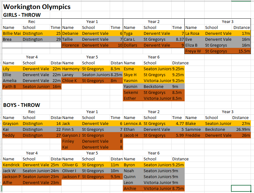 Year 6 | Tyler- Seaton Juniors | 215 | Iizzie- Maryport Juniors | 221 |